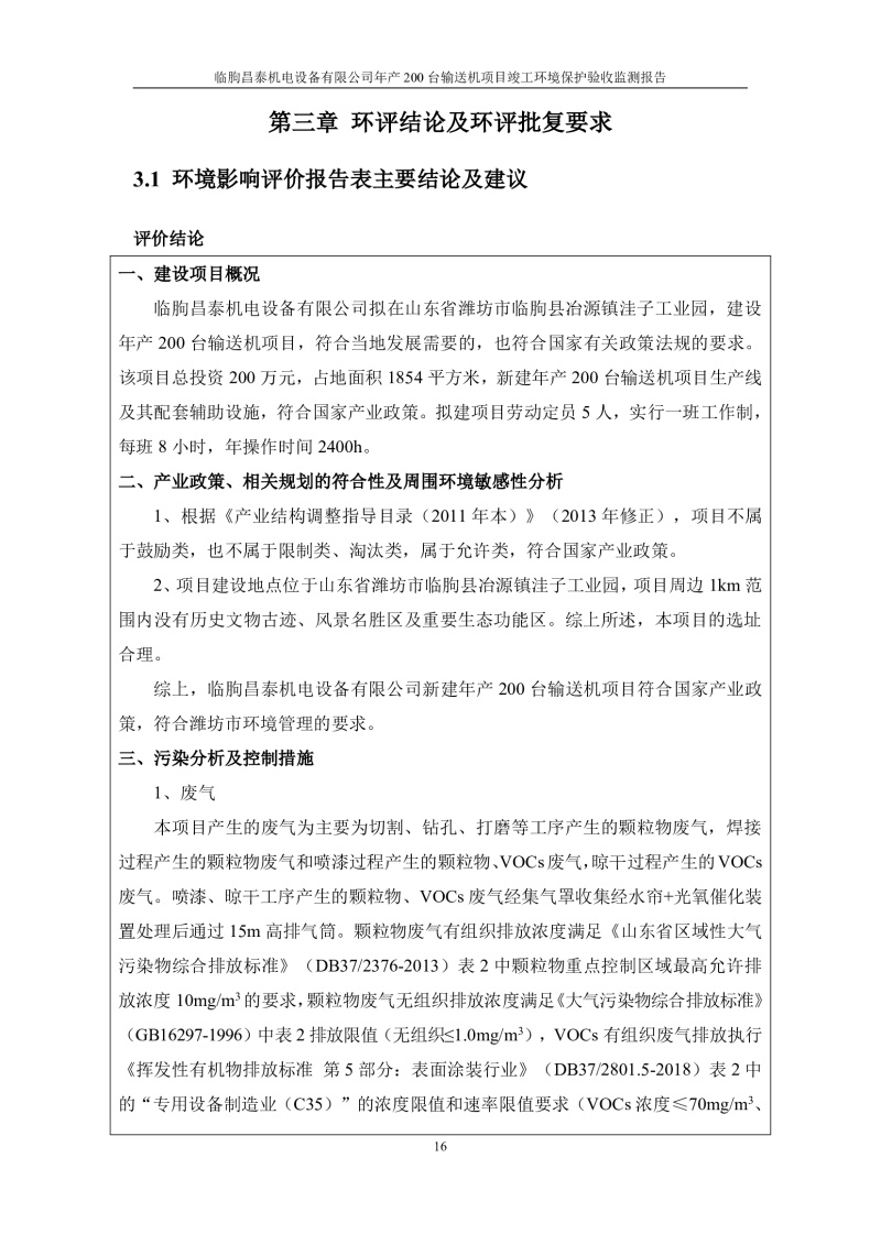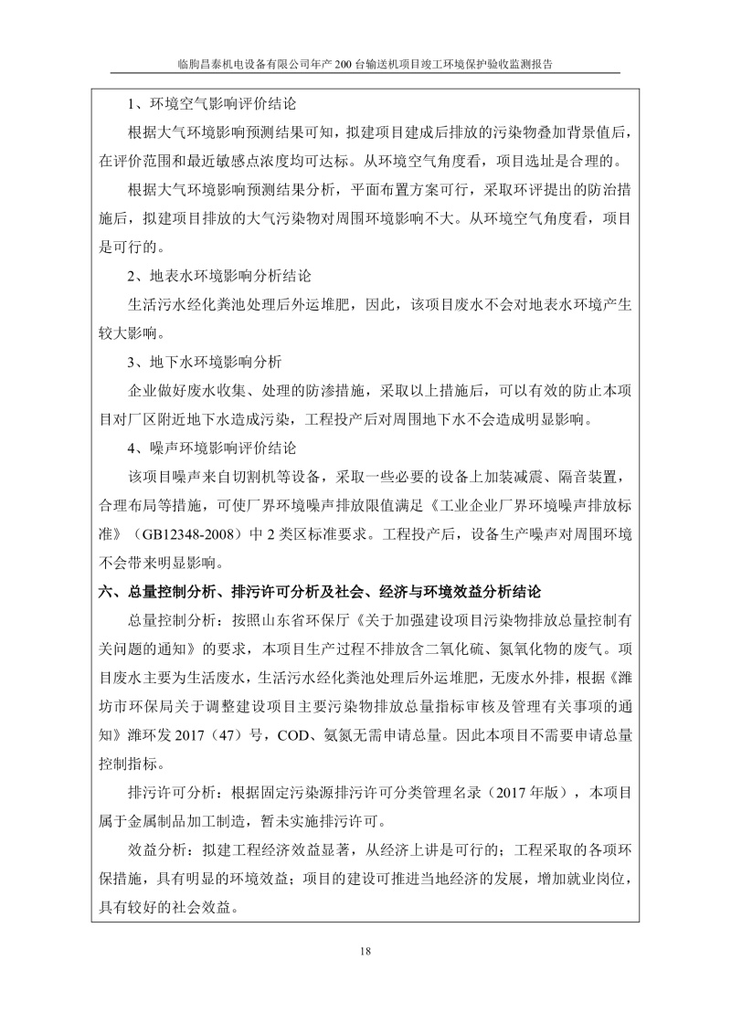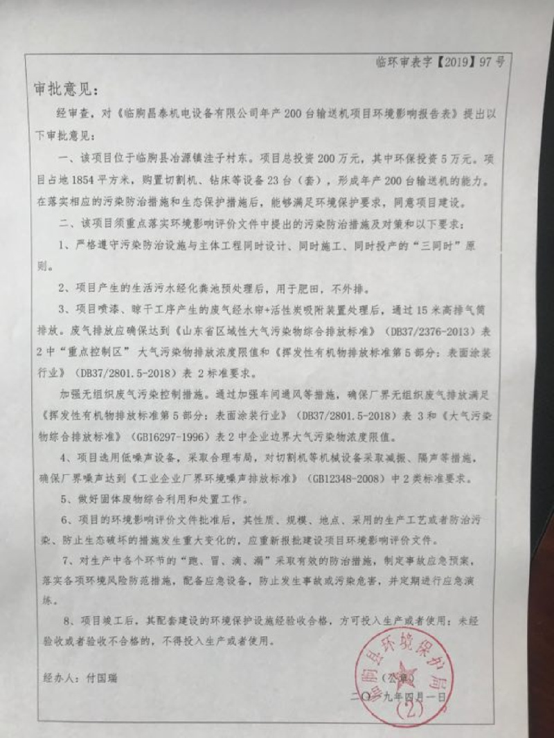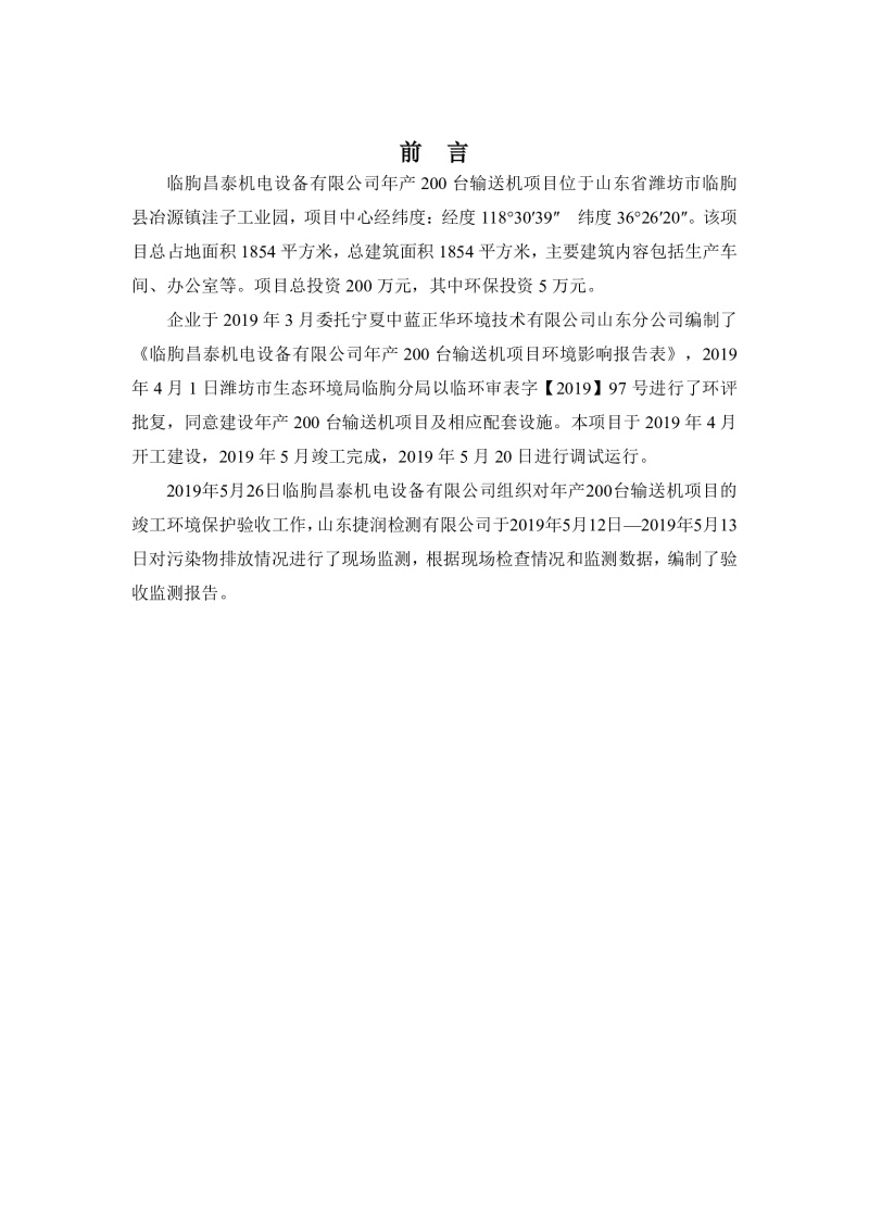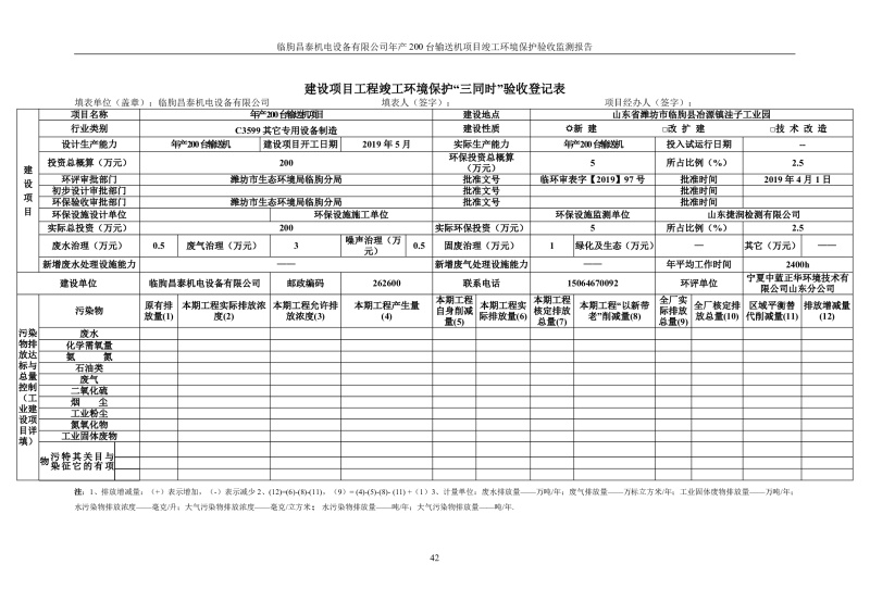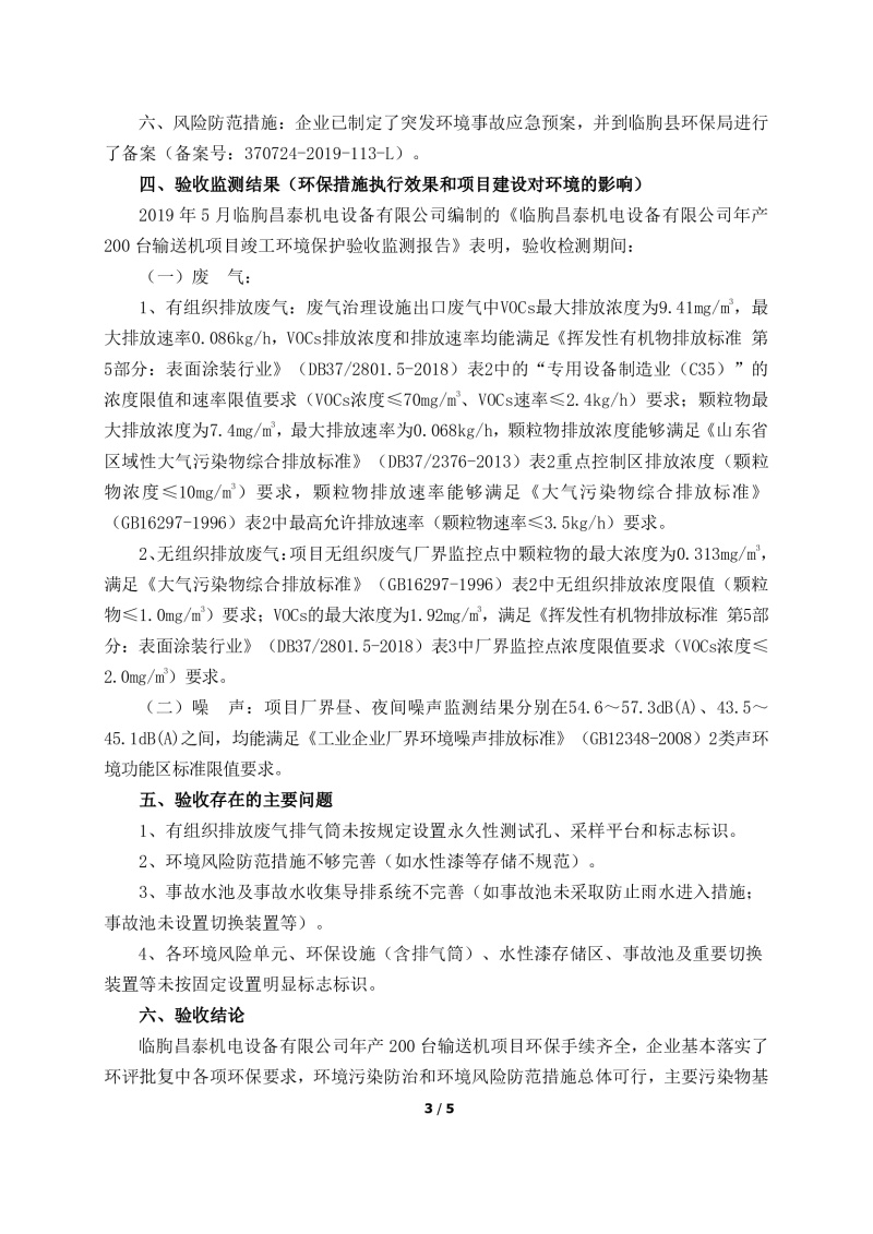 臨朐昌泰機電設(shè)備有限公司現(xiàn)將年產(chǎn)200臺輸送機項目竣工環(huán)境保護驗收監(jiān)測報告表、其他需要說明的事項等內(nèi)容公示