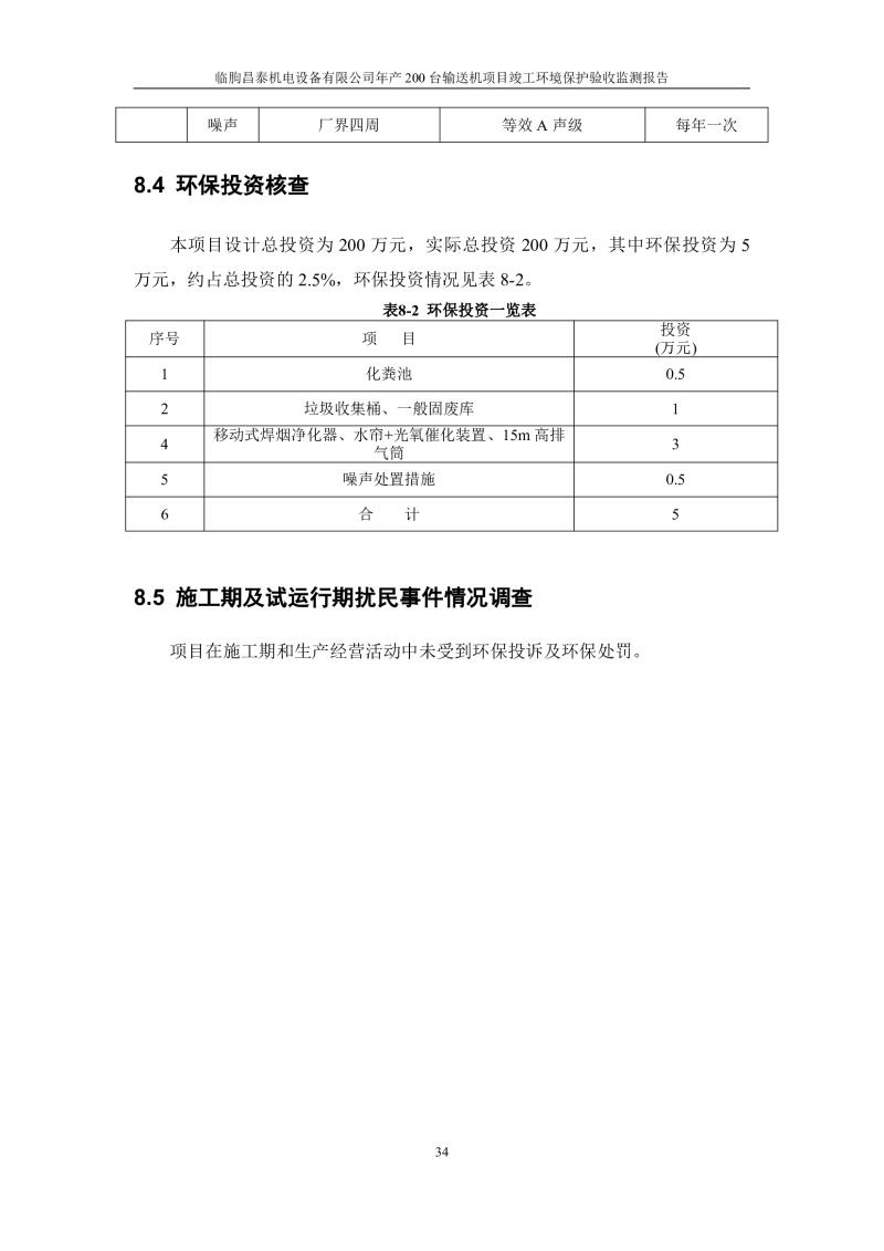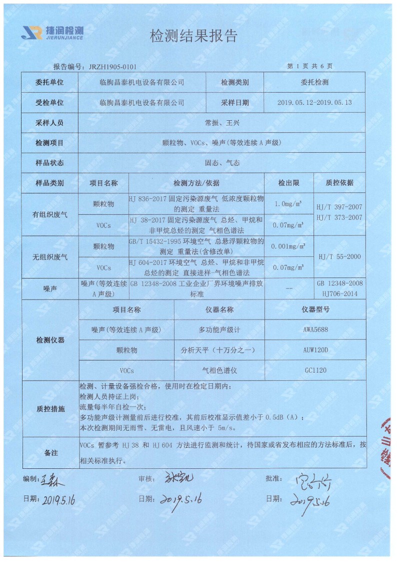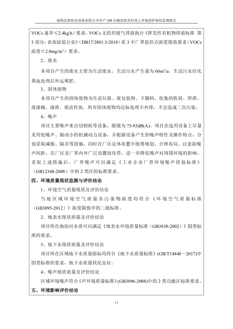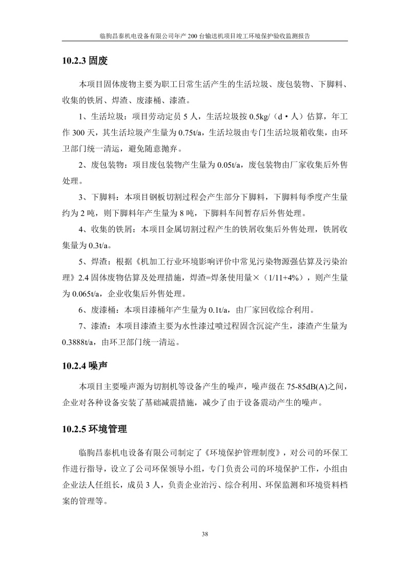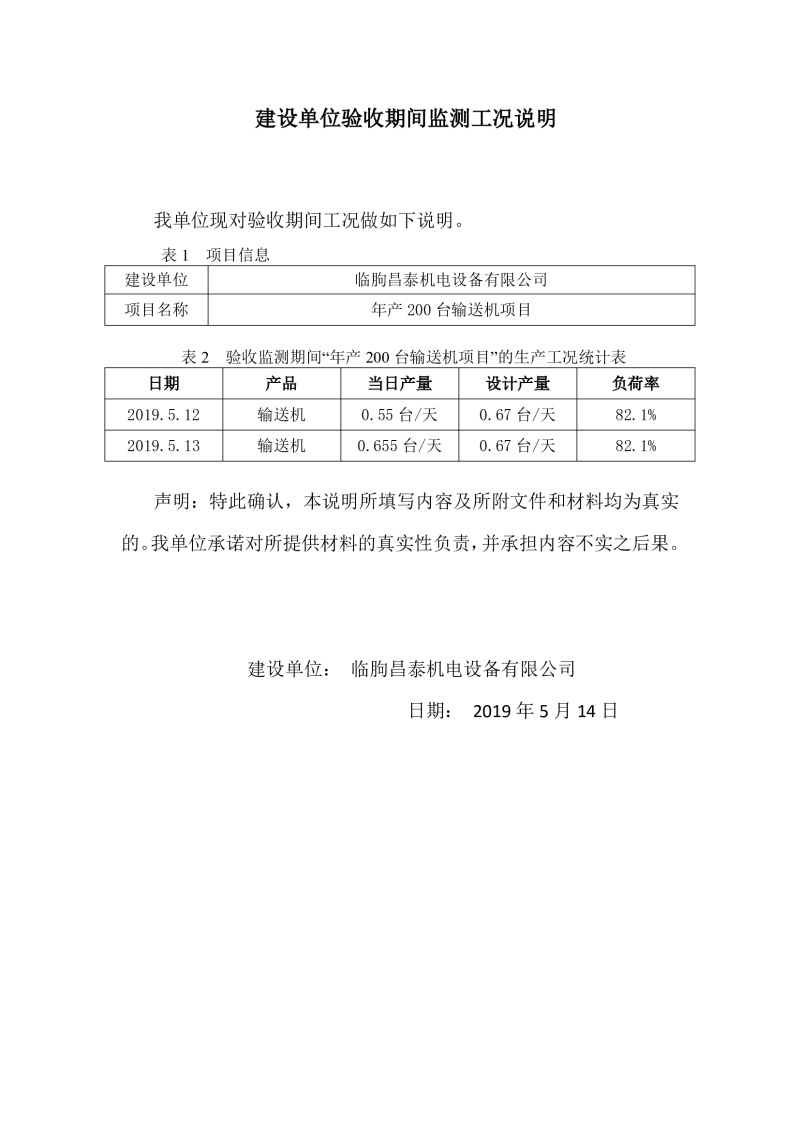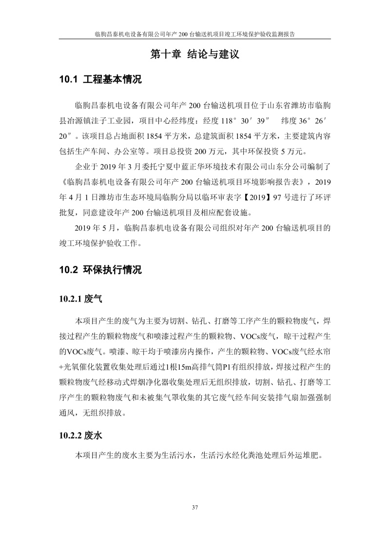 臨朐昌泰機電設(shè)備有限公司現(xiàn)將年產(chǎn)200臺輸送機項目竣工環(huán)境保護驗收監(jiān)測報告表、其他需要說明的事項等內(nèi)容公示