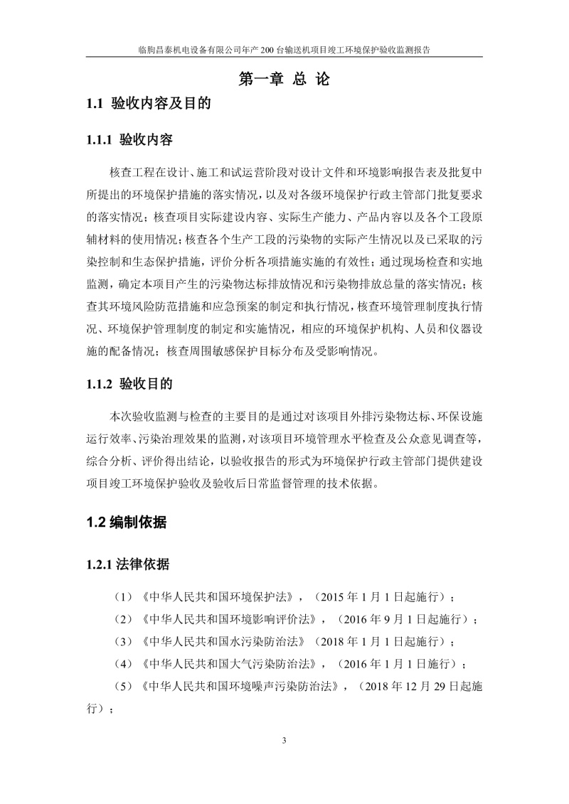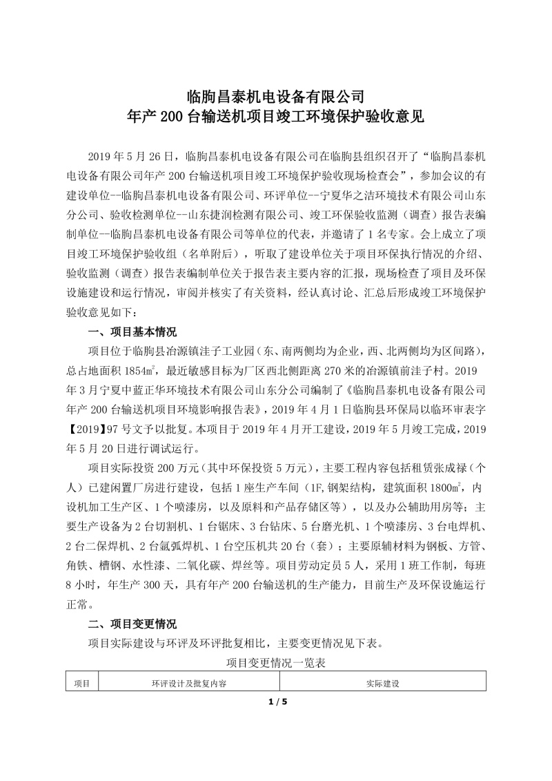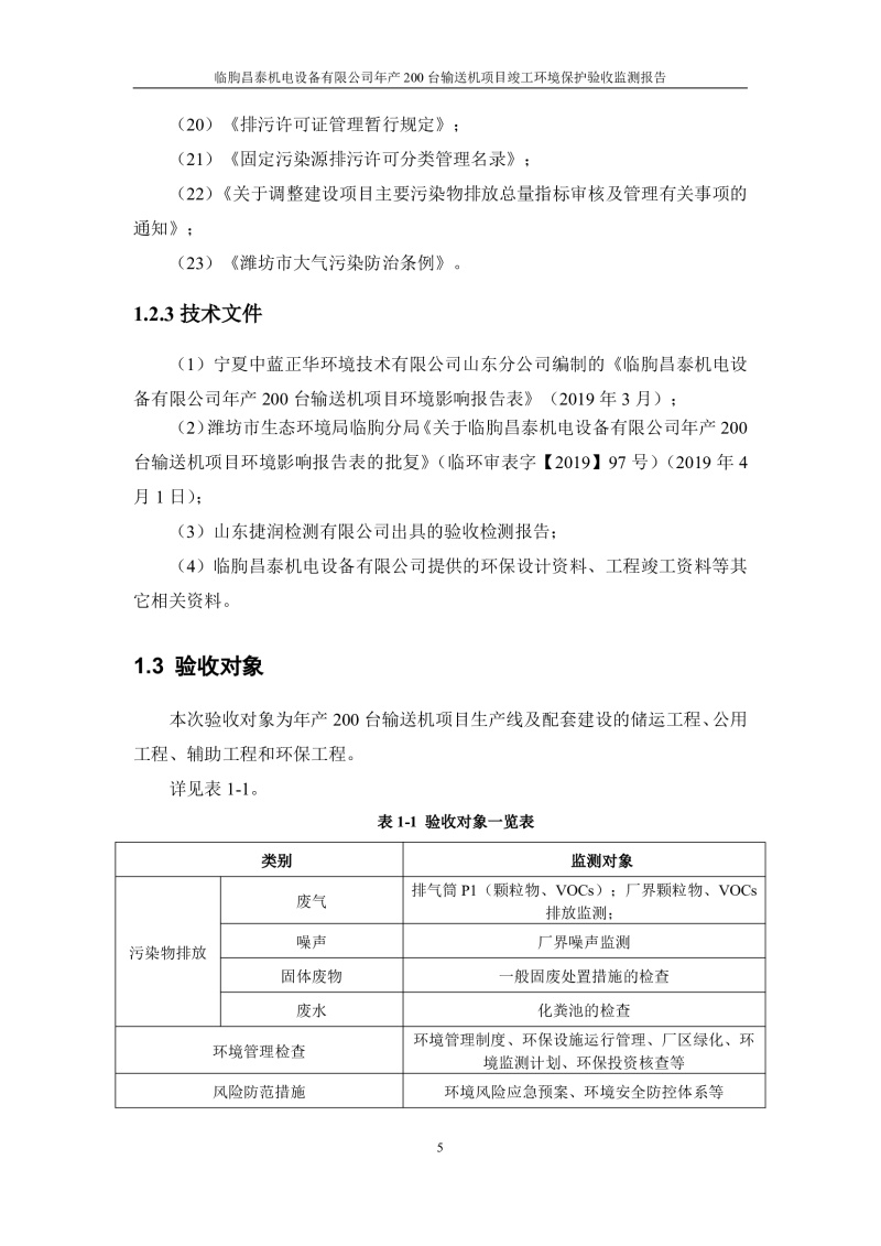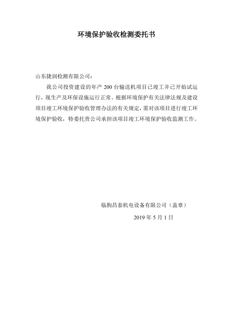 根據(jù)《建設(shè)項目竣工環(huán)境保護驗收管理辦法》(原國家環(huán)保總局令第13號)、《建設(shè)項目竣工環(huán)境保護驗收暫行辦法》、《建設(shè)項目竣工環(huán)境保護驗收技術(shù)指南 污染影響類》(生態(tài)環(huán)境部公告[2018]9號)的有關(guān)規(guī)定,臨朐昌泰機電設(shè)備有限公司現(xiàn)將年產(chǎn)200臺輸送機項目竣工環(huán)境保護驗收監(jiān)測報告表、其他需要說明的事項等內(nèi)容公示如下: