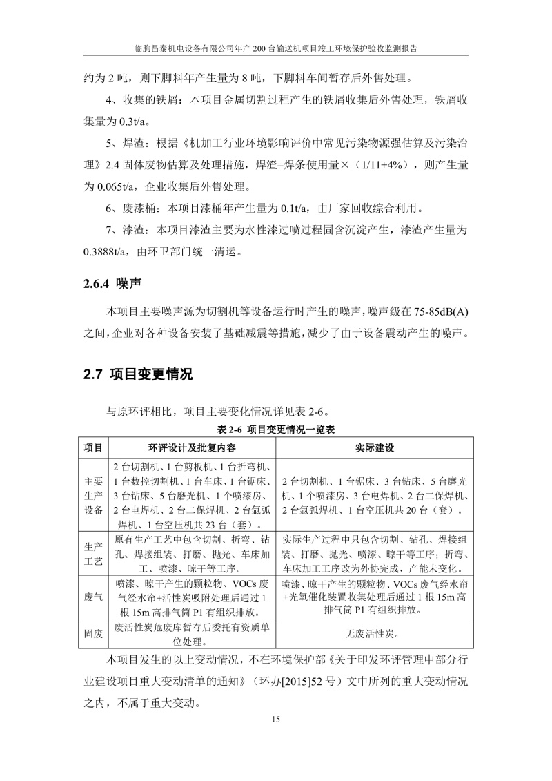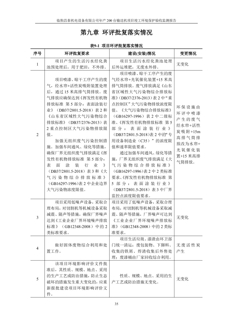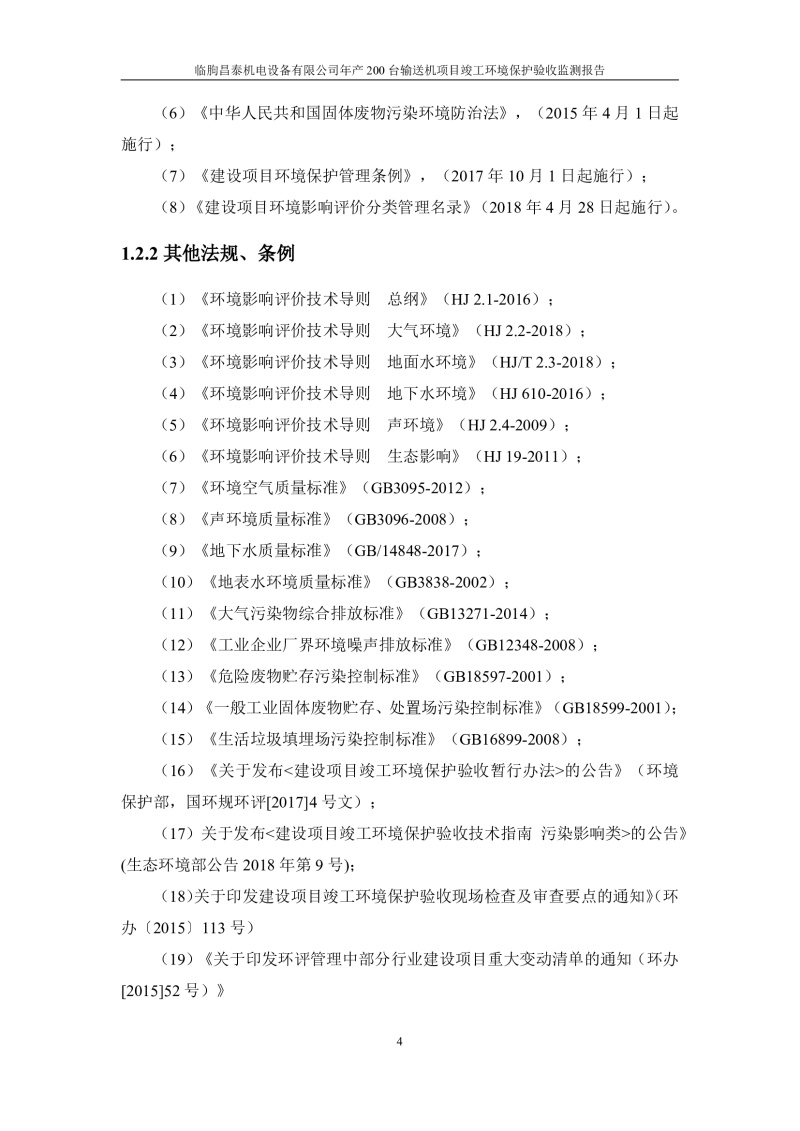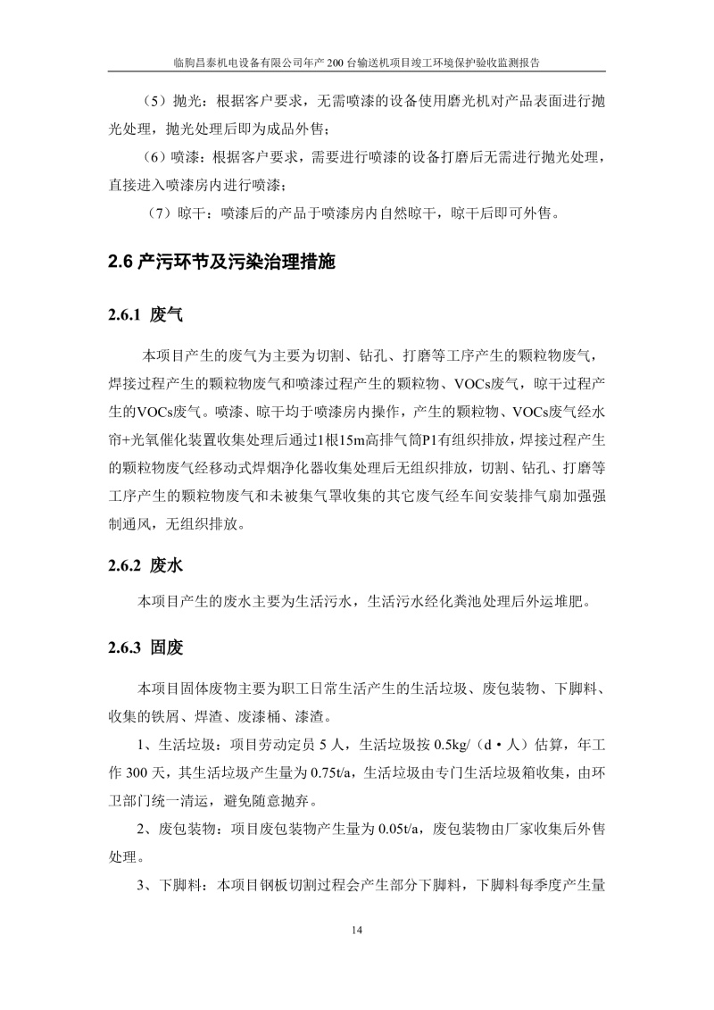 根據(jù)《建設(shè)項目竣工環(huán)境保護驗收管理辦法》(原國家環(huán)保總局令第13號)、《建設(shè)項目竣工環(huán)境保護驗收暫行辦法》、《建設(shè)項目竣工環(huán)境保護驗收技術(shù)指南 污染影響類》(生態(tài)環(huán)境部公告[2018]9號)的有關(guān)規(guī)定,臨朐昌泰機電設(shè)備有限公司現(xiàn)將年產(chǎn)200臺輸送機項目竣工環(huán)境保護驗收監(jiān)測報告表、其他需要說明的事項等內(nèi)容公示如下: