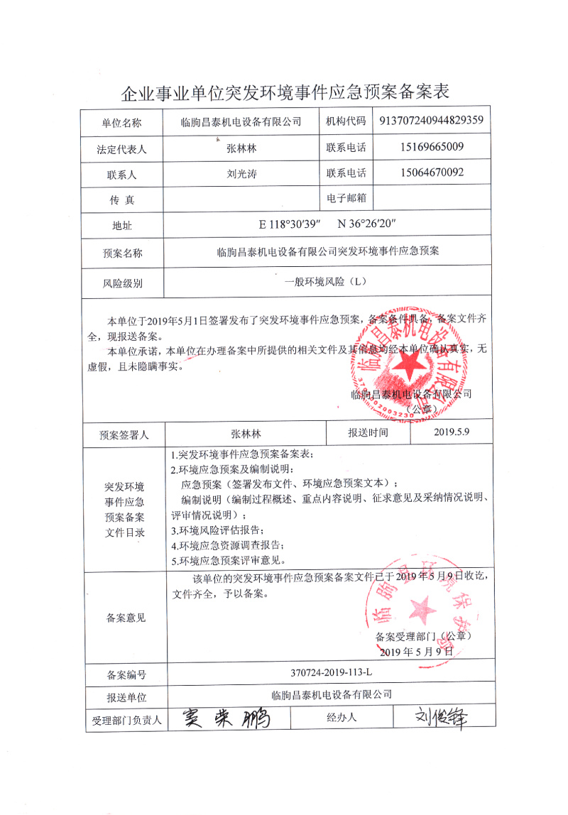 建設(shè)單位:臨朐昌泰機電設(shè)備有限公司